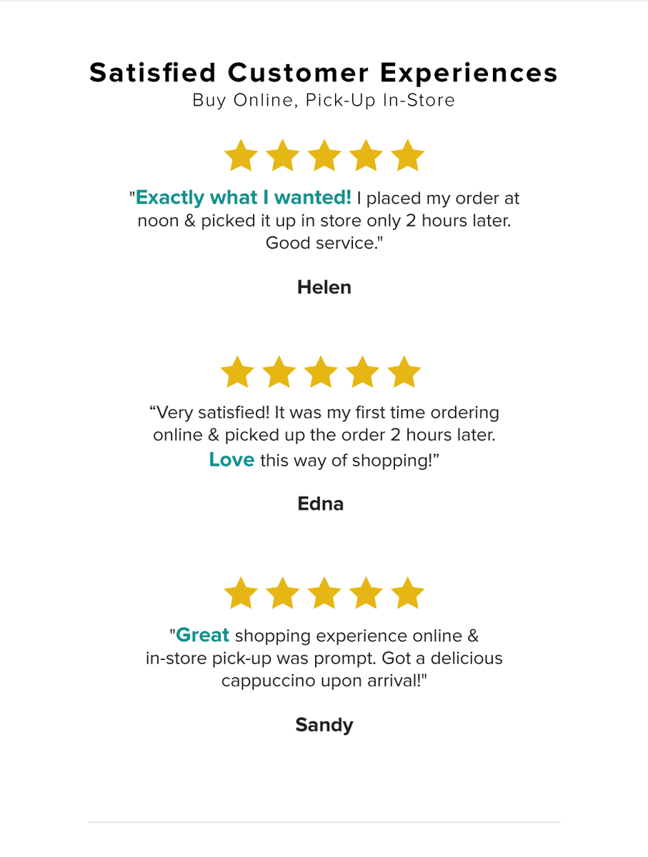 You may present yourself in-store at the Customer Service counter with a photo ID and the email confirmation you received in order to pick up your order.