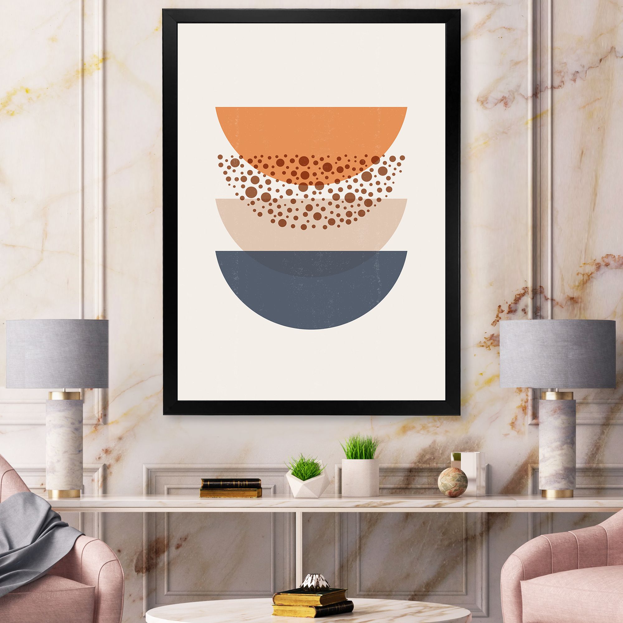 Sign in to see items you have added using another computer or deviceAbstract Sun & Moon Geometrics in Blue & Orange Wall Art