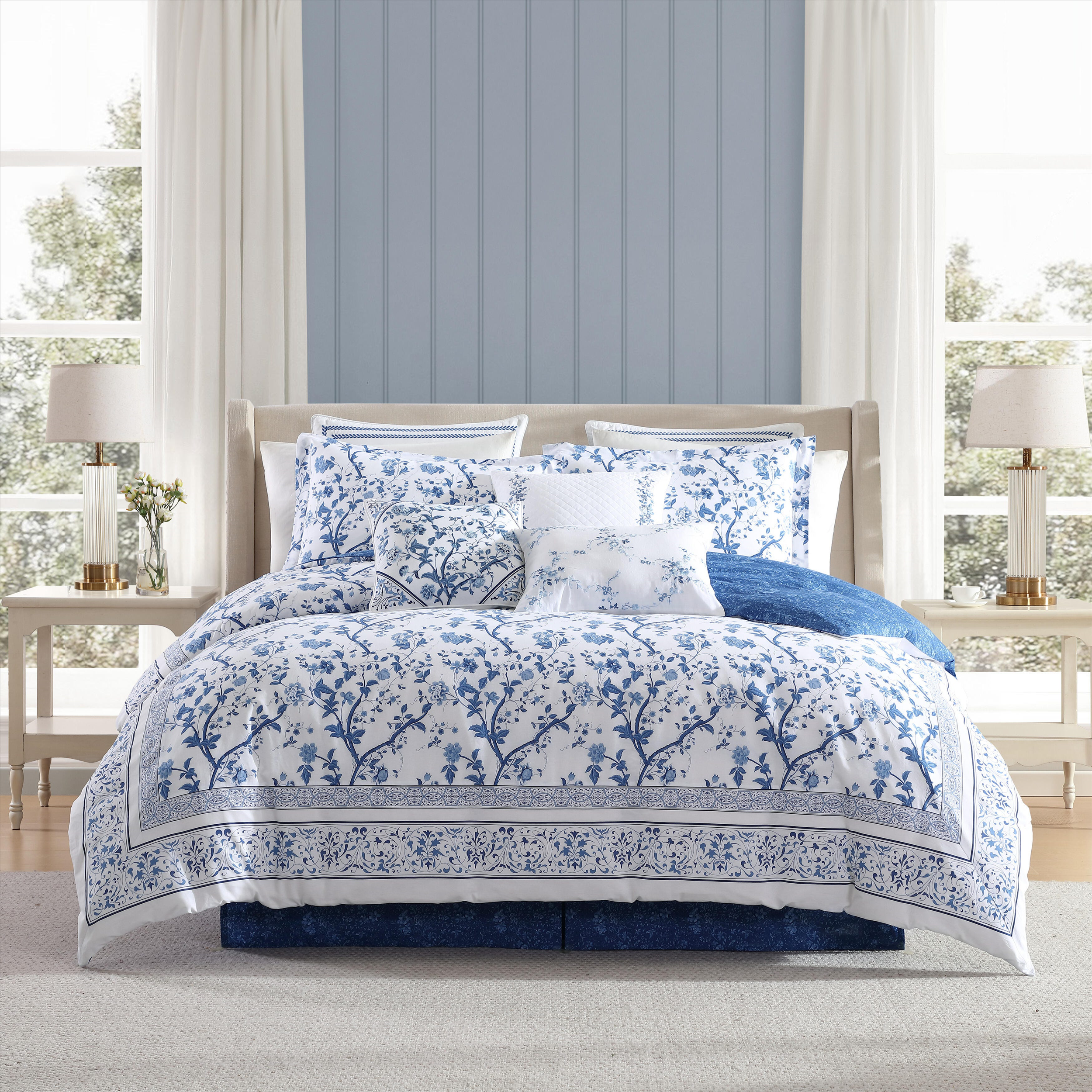 - The Laura Ashley Charlotte duvet set features a texture floral print in dark and light shades of blue. Reverse has a dark blue ground with a light blue floral pattern. Available in alternate sizes.