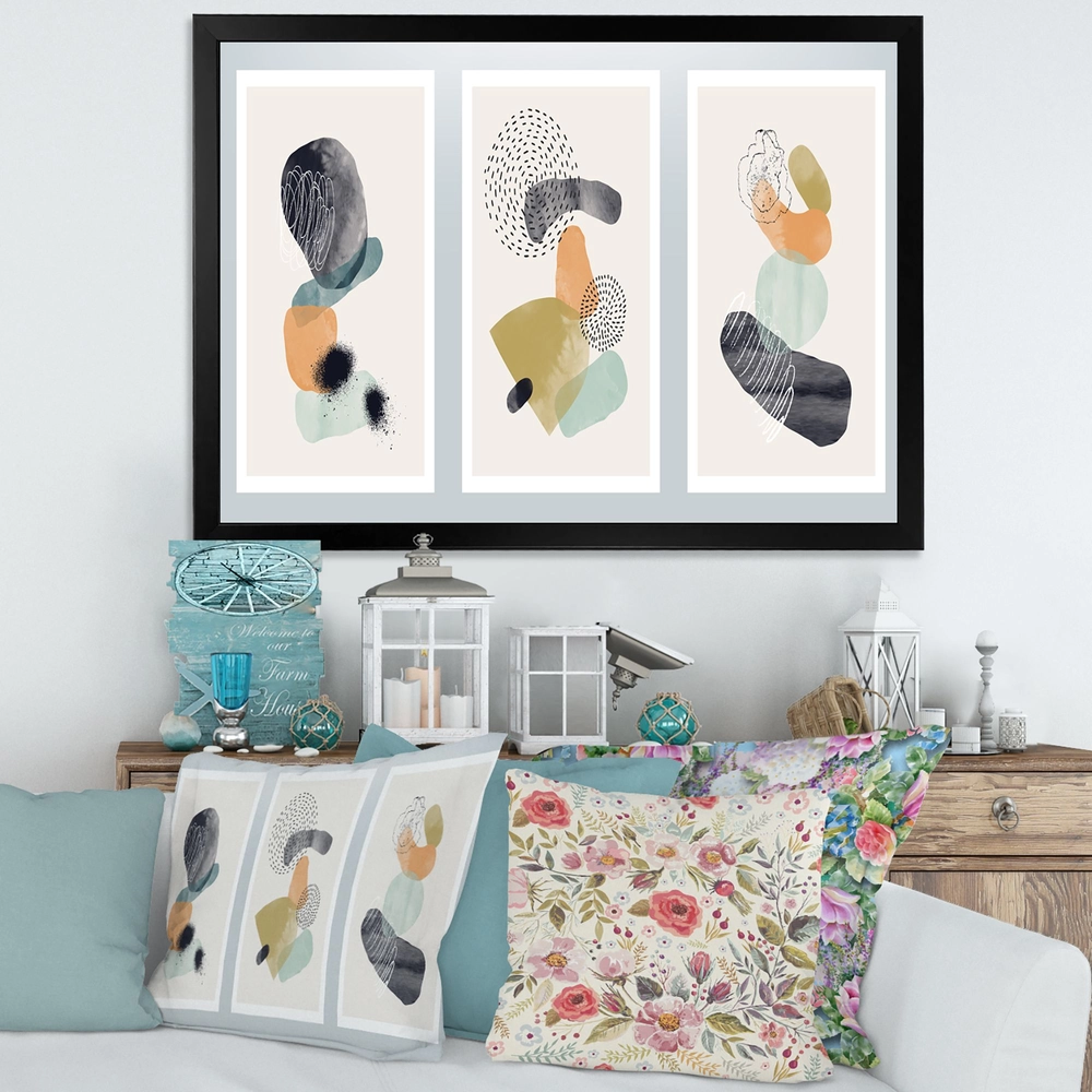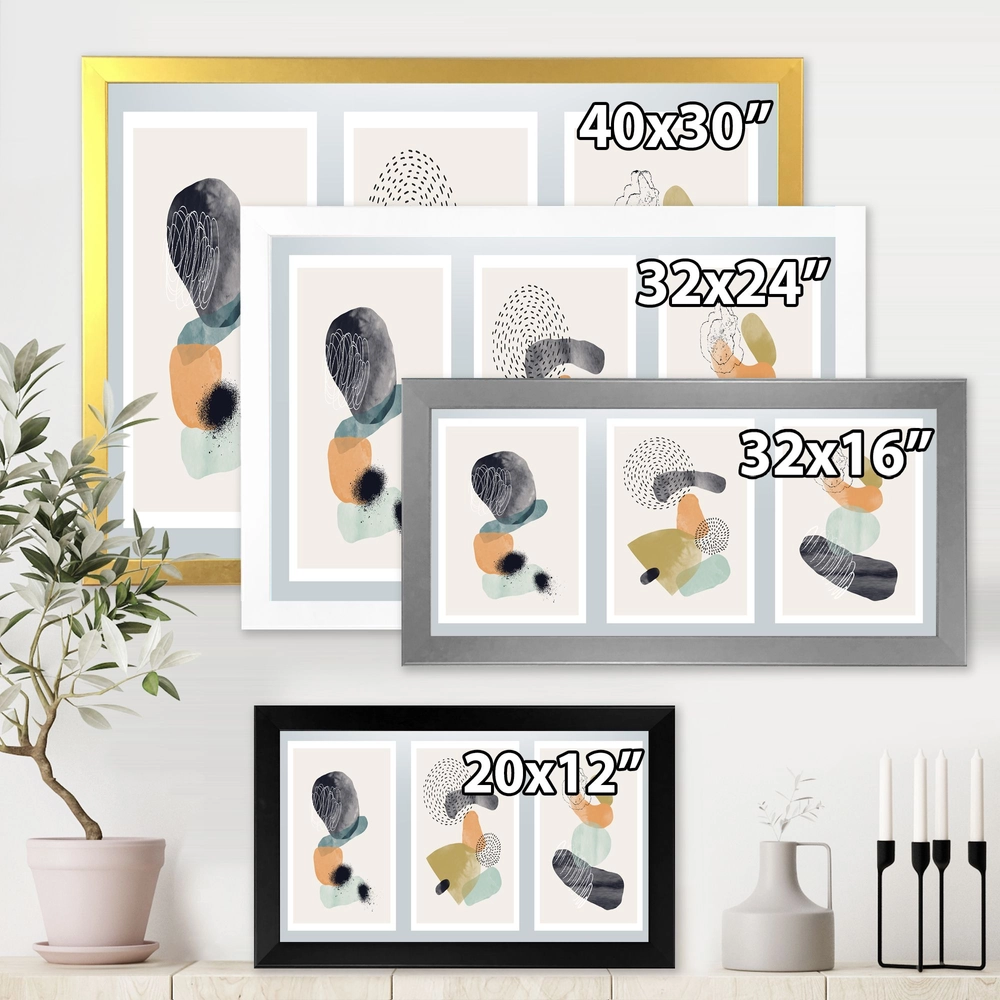 Elevate your space with the Minimalistic Composition of Organic Shapes I Wall Art. This modern abstract piece is a framed giclée print on premium cotton canvas, rendered with fade-resistant inks for lasting colour. The artwork is mounted and framed on a 1.5" wide frame and arrives ready to hang with instructions and a complete hardware kit.