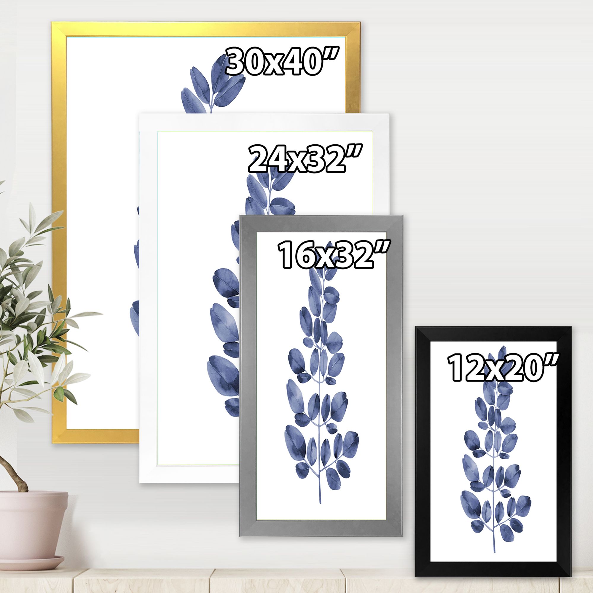 Navy Blue Eucalyptus II brings a refined botanical motif to your wall. The artwork is a giclée print on premium cotton canvas using fade-resistant inks, then mounted and framed on a 1.5" wide frame. Available in several frame colours, each piece is carefully packaged with corner protectors and sturdy boxes, and arrives ready to hang with an included kit and instructions. Style: Traditional; Subject: Floral; Colour: Blue. Purchase this framed canvas to enjoy long-lasting colour and ready-to-hang convenience.