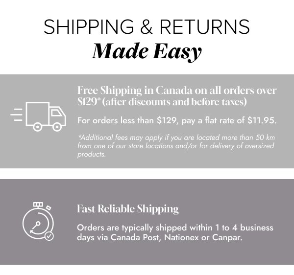 Oversized products are subject to separate shipping conditions. These may include furniture, mattresses, large wine coolers, recliners, or any oversized items that cannot be shipped via regular courier. Oversized items are marked on their product and cart pages. Enter your postal code at checkout for applicable rates in your area.