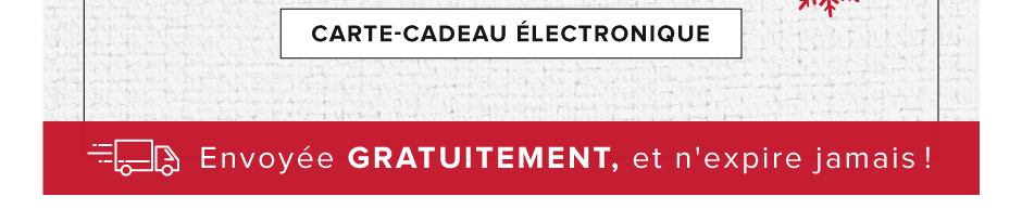*Offre valide seulement pour les nouveaux abonnés de notre infolettre. Exclusivement en ligne. Exclut les cartes-cadeaux. Politique de confidentialité