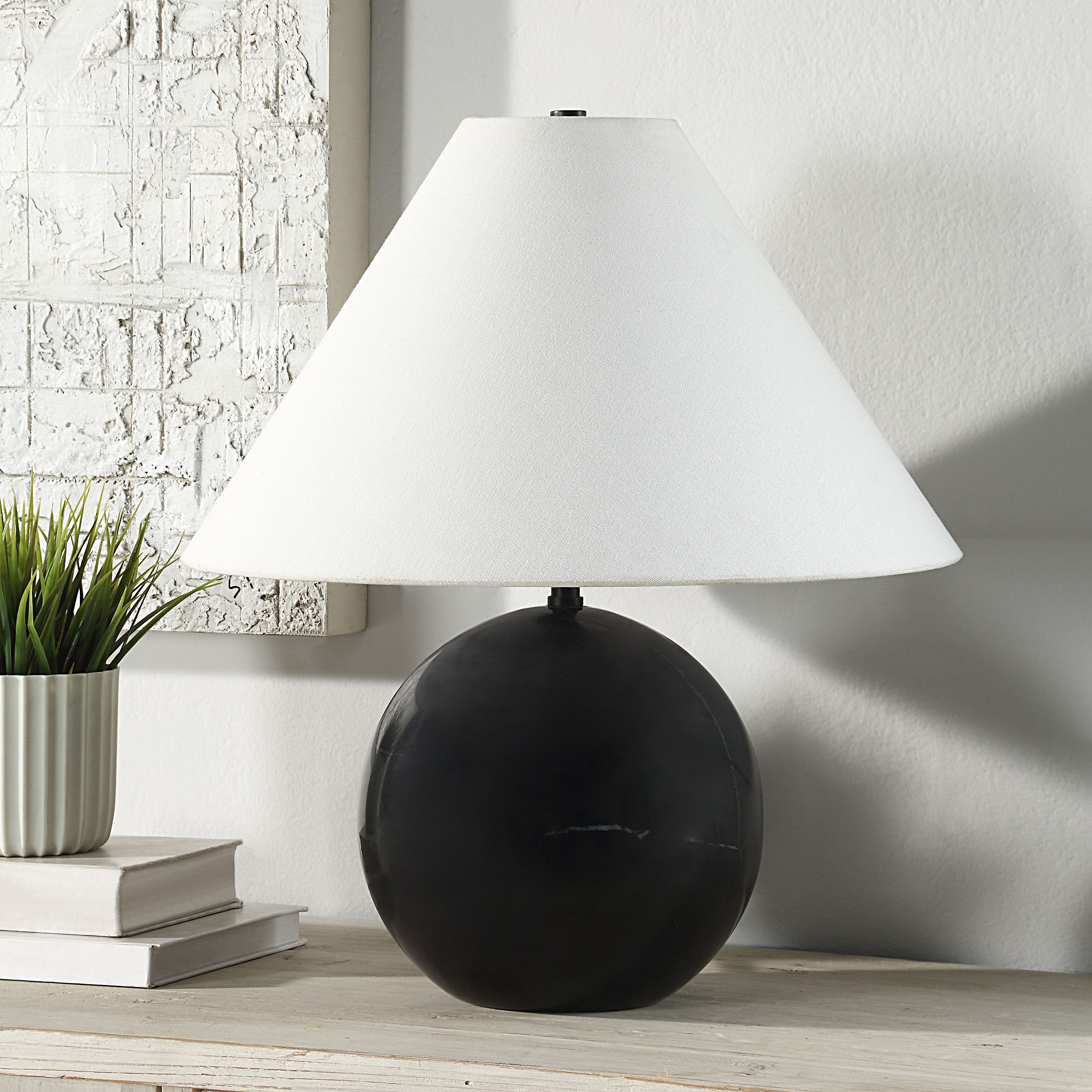 - Base en marbre — Socle en marbre adouci aux tons noirs qui s’harmonise à divers styles et apporte une présence visuelle élégante sans dominer l’espace.