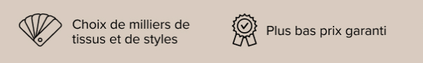 - Demandez à nos spécialistes en habillage de fenêtres sur mesure de vous faire part de nos promotions mensuelles sur les tissus de draperies sur mesure.